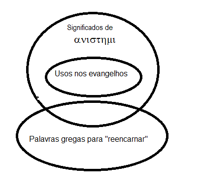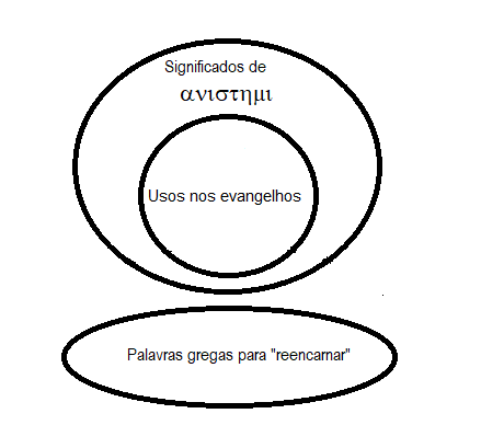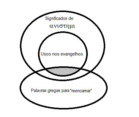 Resumindo: além de ainda carecer de um uso claro de anístêmi como “reencarnar”, a evidência interna ofertada pelos evangelhos depõe contra essa acepção. Ainda que Pastorino tenha feito uma tradução “possível”, ela está longe de ser “provável”. O diagrama de Venn que tem se delineado é o abaixo: