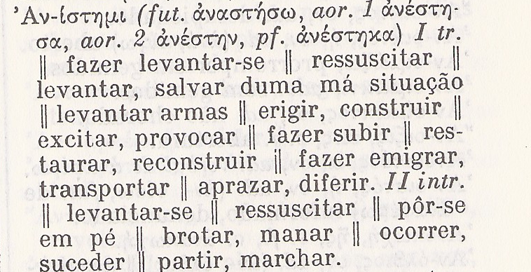 - Uma é a que Pastorino deu como exemplo para sua tradução de anístêmi.